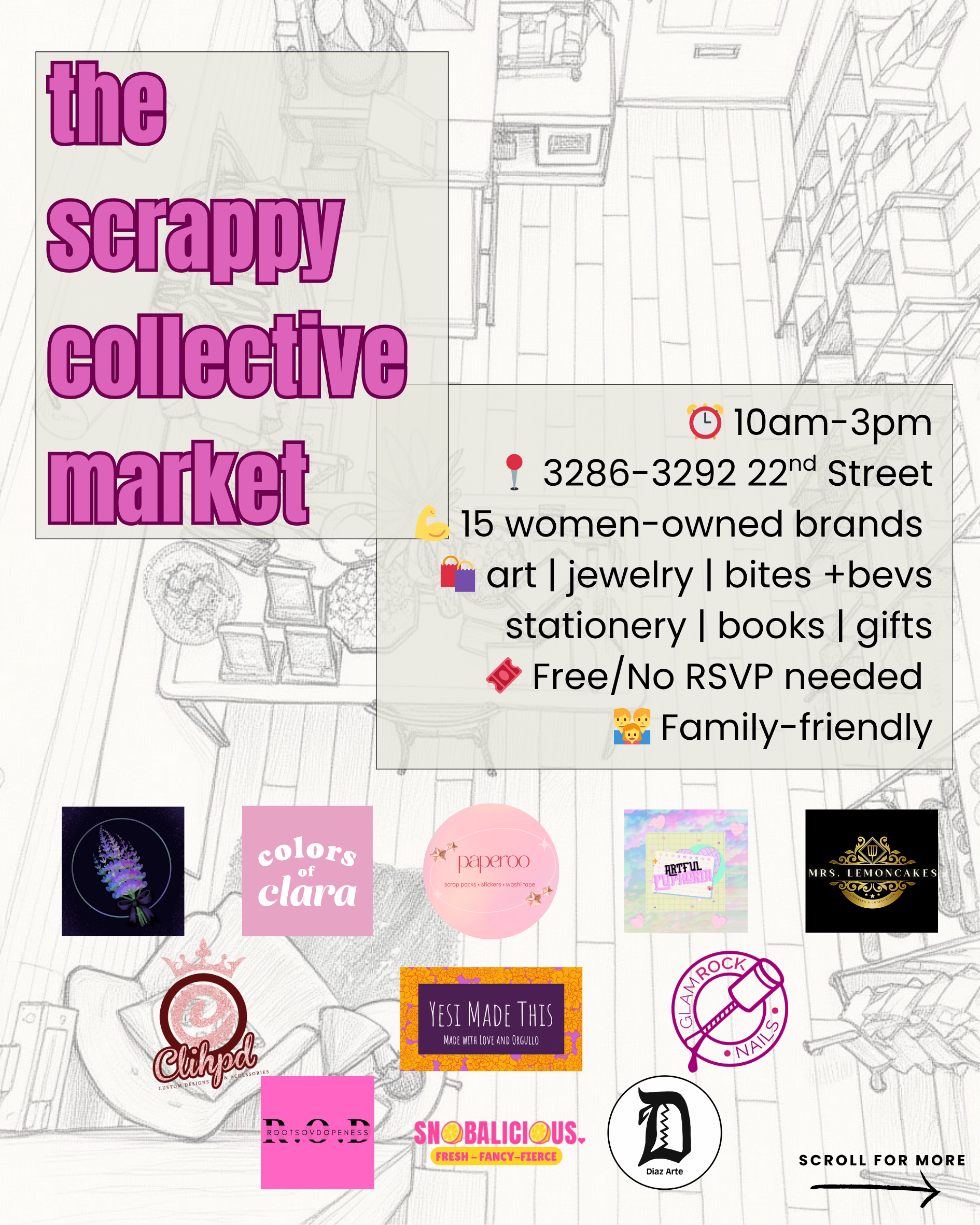 → Free stickers for first 20 shoppers at Scrap&Sip