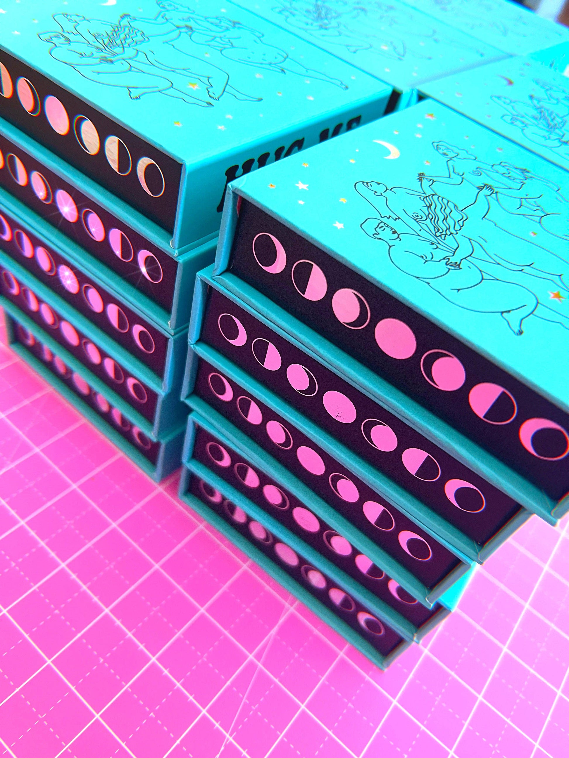 Comes packaged in it's signature reusable magnetic closure cardboard Hug Box.